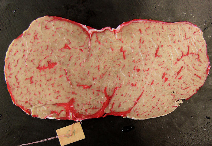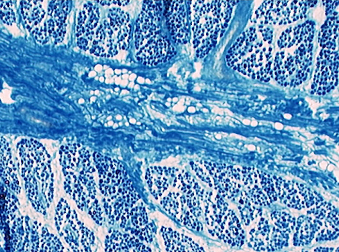 Das war ein Zufallsfund in unserem institutseigenem Schlachthaus. In den Muskelfaserbündeln sind nur noch etwa 10 % Muskelfasern übrig