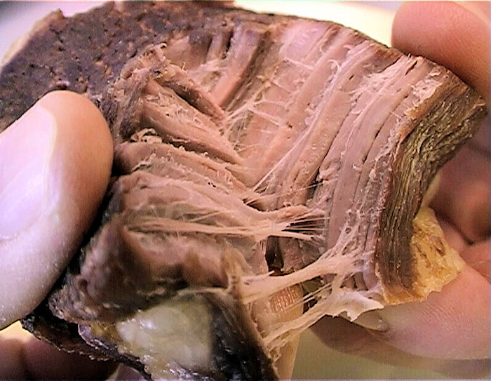 bloßem Auge eine interessante Bündel-Struktur des Fleisches mit den